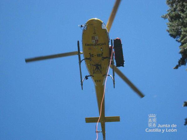 Helicóptero de rescate en la sierra de gredos,con un montañero lesionado