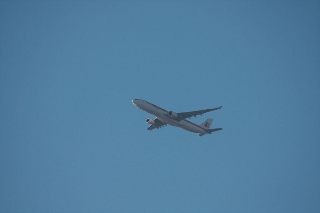 Un Airbus A330 de Iberiadespegando tras la escala en Gran Canaria llevando a la Selección de regreso a casa TWR 118.300,GND 121.700