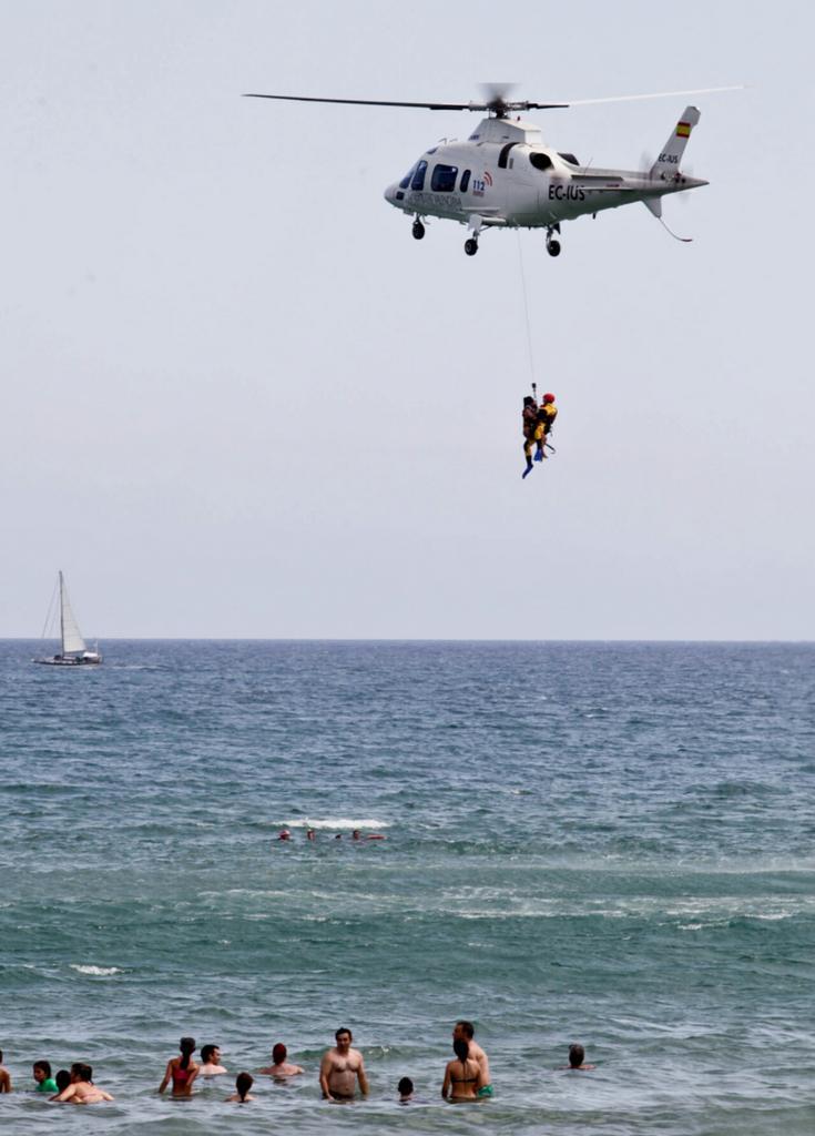En la playa de gandia con helicoptero y cruz roja.