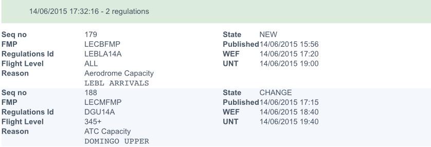 En estos momentos 3 regulaciones al tráfico activas en España. Ninguna por ATC IND ACTION