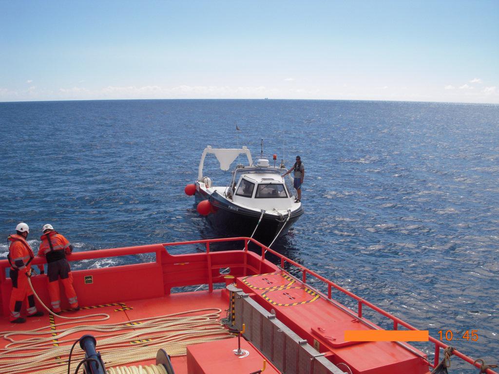 Plocan Uno a la deriva el día 15 cerca de Taliarte con 3 tripulantes.La Guardamar Talía lo remolcó hasta Taliarte