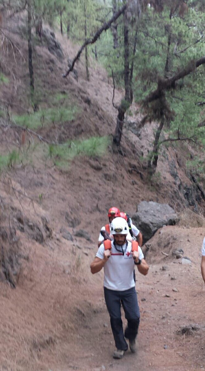 Gran labor del equipo de rescate en en la extracción de La Caldera de Taburiente de un senderista