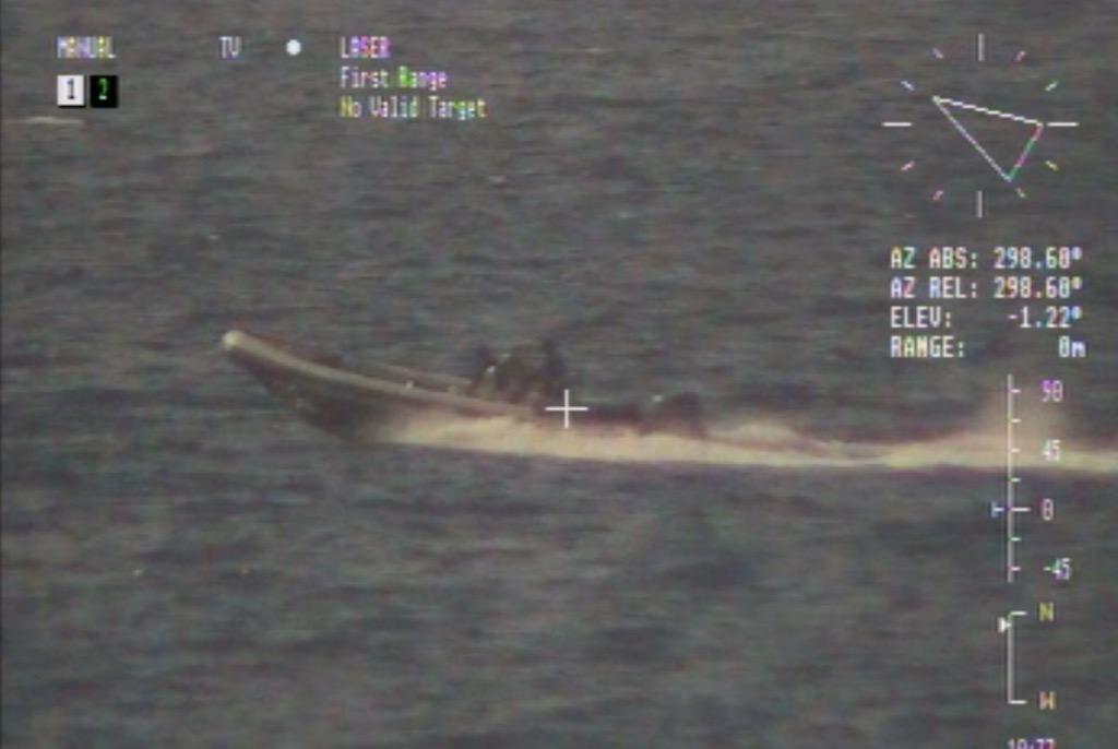 El “Tornado” con la ayuda de sus dos embarcaciones rápidas semirrígidas, procedió a perseguir y detener la embarcación sospechosa neumática con sus dos ocupantes, mientras se recogían los paquetes lanzados al mar antes de que se pudieran hundir.