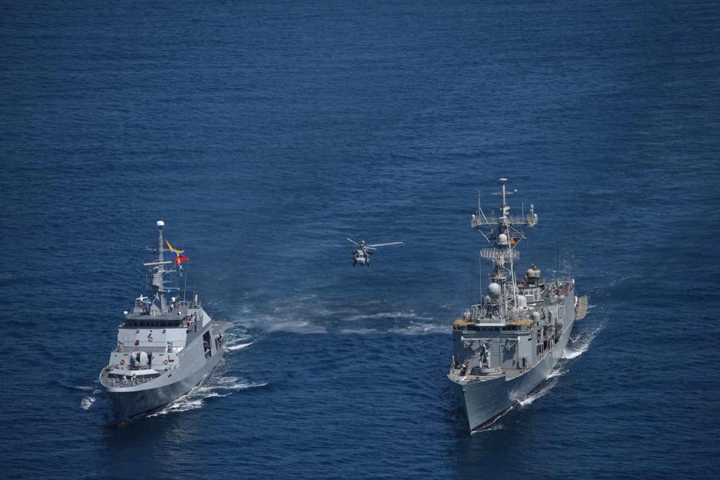 Encuentro en la mar, fragata VICTORIA Armada_ y "7 AGOSTO" armada de colombia. Combaten contra piratería en Índico