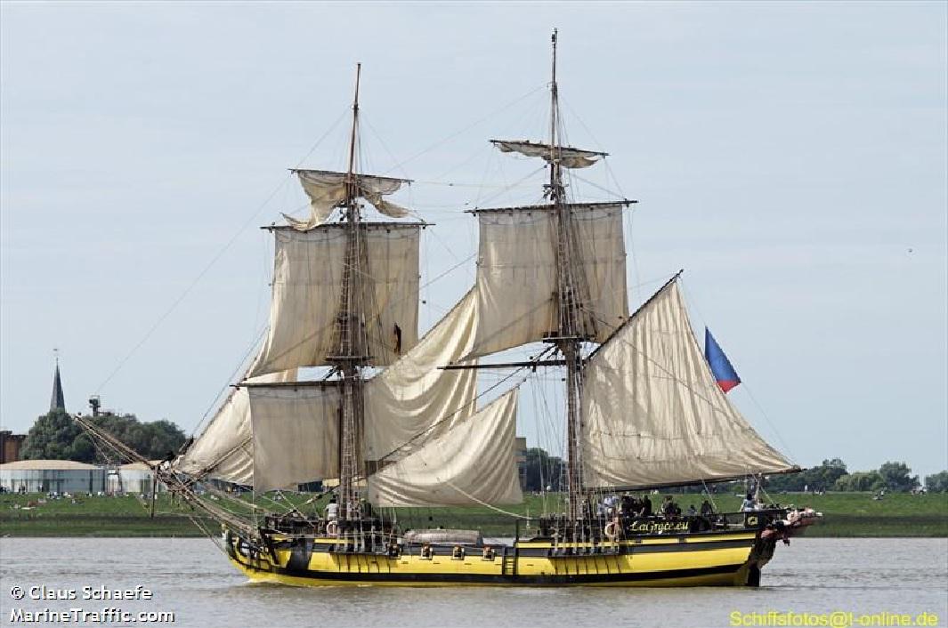 Velero checo réplica bergantín LA GRACE sin gobierno en Palma , 13 personas. MARTA MATA lo remolca a Astilleros