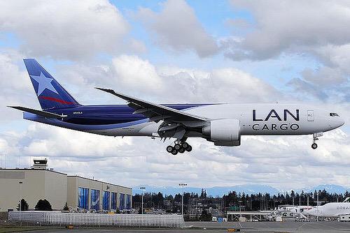 A las 17:30 y procedente de Amsterdam llega a este gigante Boeing 777 de LANAirlines CARGO