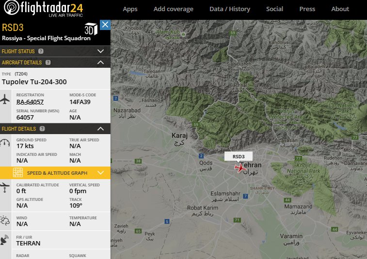 RUS state Tu-204 as RSD3 prepares to depart Teheran, Iran