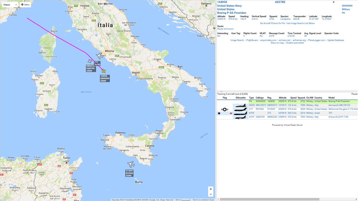 Back home: USNavy Boeing P-8A (168858) in flight to NAS Sigonella MIL_Radar