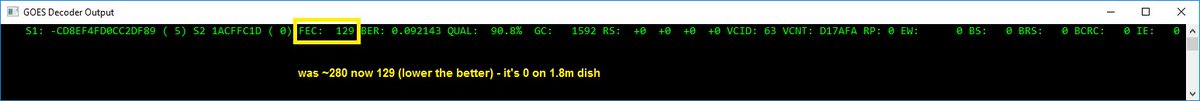 Remember folks, G16 HRIT is linear so "skewing" the antenna is helpful in further increasing SNR. Substantial FEC improvement here.